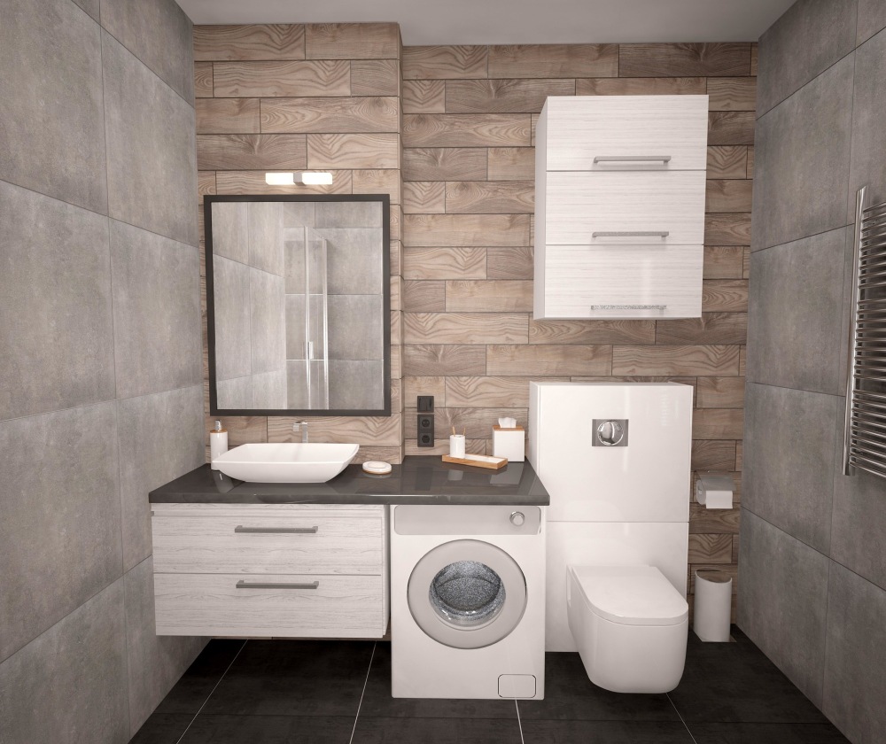 - Zdecyduj się na szafkę z materiału naśladującego jasne drewno,